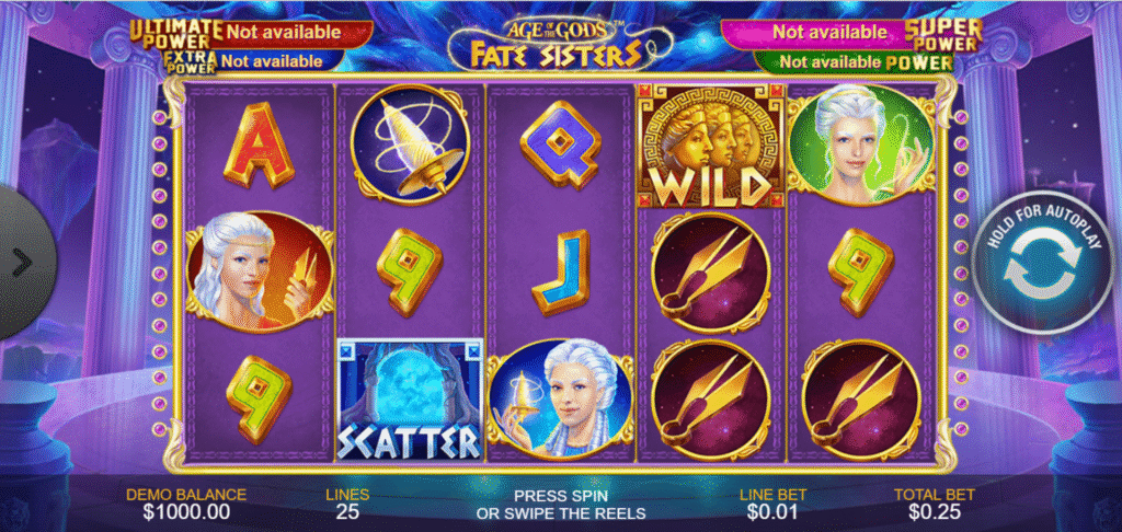 The Age of Gods: Fate Sisters slot from Playtech takes players deep into the heart of Greek mythology, where destiny is controlled by three divine sisters Lachesis, Clotho, and Atropos. Released in 2016 as part of the legendary Age of Gods series, this 5-reel, 25-payline video slot combines elegant visuals, powerful mythic symbolism, and the thrill of a four-tier progressive jackpot. Beyond its mythological charm, it also features three unique free spin modes, each connected to one of the goddesses, offering players a rich and varied gameplay experience.