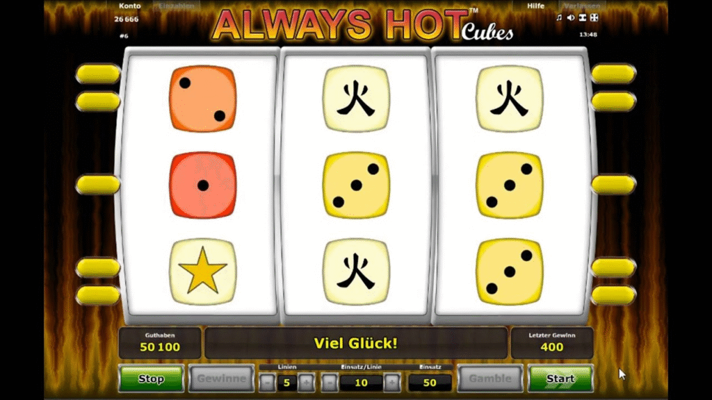 Always Hot Cubes keeps its bonus structure minimalistic yet engaging. The main highlight is the Risk Game, a classic Greentube feature that allows players to amplify winnings.