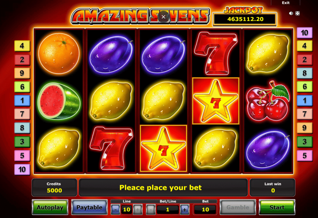 Amazing Sevens stays true to classic slot design, offering a mix of traditional fruit symbols, bells, and the Lucky 7. Each symbol carries multipliers that can turn even small bets into impressive wins.