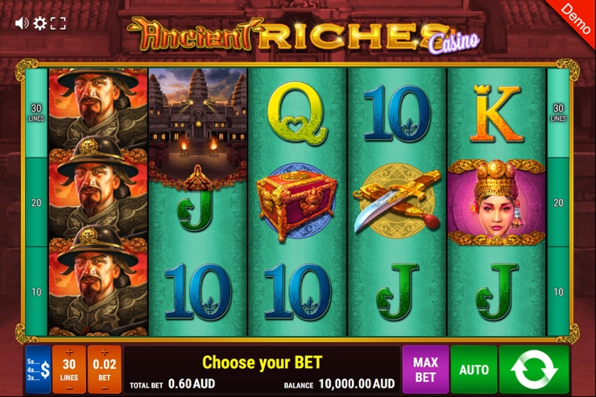 The theme of Ancient Riches Casino revolves around ancient Asian riches and timeless legends. The reels are decorated with ornate icons such as emperors, princesses, treasure chests, and golden daggers all symbols of luck and prosperity. The fiery dragon represents wisdom and power, acting as the wild guardian of the reels.