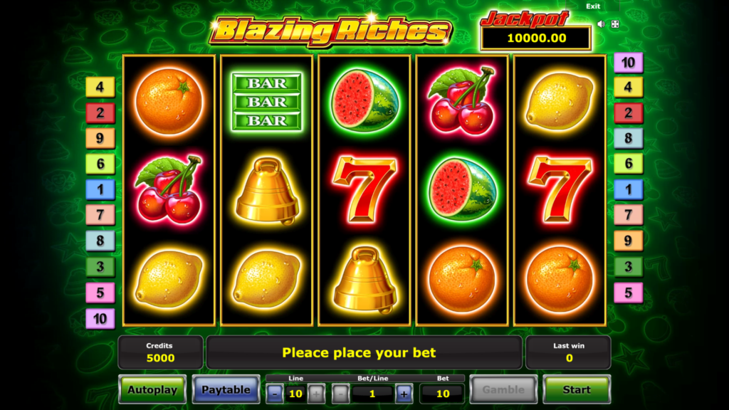 Blazing Riches features a familiar lineup of classic fruit and casino symbols.