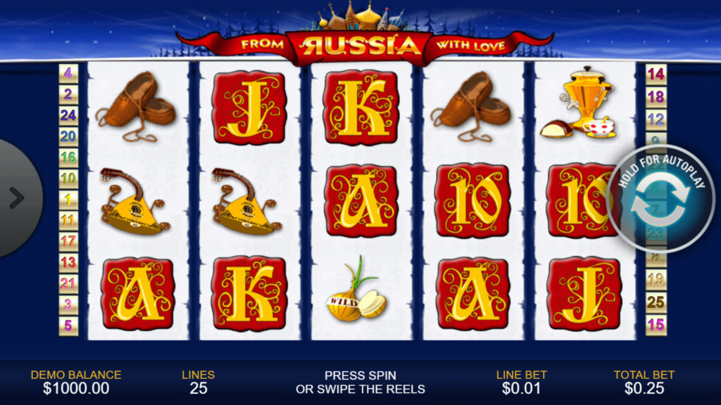 Playtech’s From Russia With Love video slot invites players into a vibrant celebration of traditional Russian culture, folklore, and symbolism. Released in 2010, this classic slot combines colorful visuals with straightforward mechanics, making it appealing to both newcomers and seasoned slot fans. Built on a 5-reel layout with 25 adjustable paylines, the game offers a more traditional payline-based experience compared to modern ways-to-win slots.