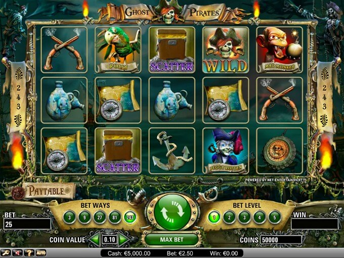The Ghost Pirates slot by NetEnt takes players deep into a world of sea bandits, buried treasures, and ghostly adventures. Set aboard a haunted pirate ship, this 5-reel online video slot delivers thrilling gameplay with up to 243 ways to win. The slot combines eerie pirate-themed visuals with immersive sound effects that make every spin feel like part of a high-seas treasure hunt. Players can activate anywhere from 3 to 243 paylines, making it a game that caters to both cautious sailors and daring high-rollers. With potential payouts of up to 1,500x per spin, Ghost Pirates keeps the excitement alive with its wilds, scatters, and free spins bonus features.