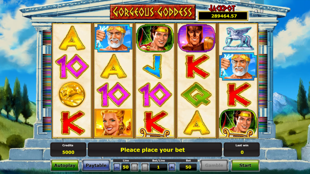 Greentube’s Gorgeous Goddess slot machine transports players into a world inspired by ancient mythology, blending classical symbols, adjustable paylines, and jackpot potential into a traditional yet rewarding slot experience. Played across a 5×3 reel layout with up to 50 selectable paylines, the game offers payouts reaching up to 5,000× and features including wild symbols, scatters, adjustable wagering, and a built-in gamble feature for win multipliers.