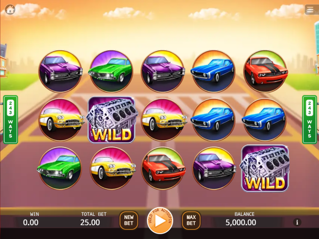 Muscle Cars is a high-octane, automotive-themed video slot from KA Gaming that celebrates the raw power and iconic style of classic American muscle cars. Released in 2019, the game immerses players in a world of roaring engines, polished chrome, and competitive racing spirit, bringing together bold visuals and adrenaline-fueled gameplay. Built on a five-reel format with 243 ways to win, Muscle Cars appeals to players who enjoy fast-paced slots with strong visual identity and rewarding bonus features.