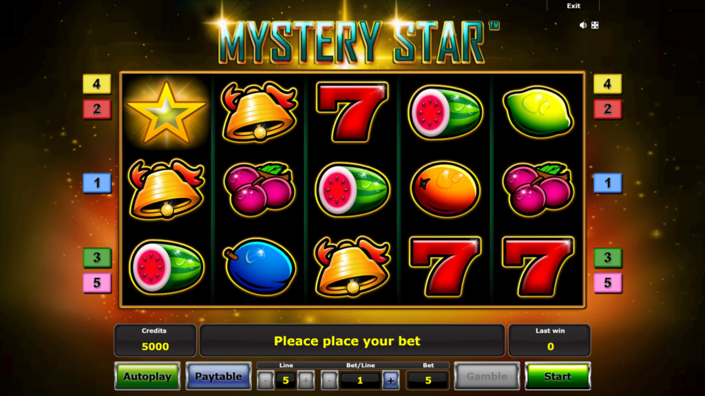 Mystery Star uses a combination of classic fruit symbols and special icons, offering a balanced payout system.