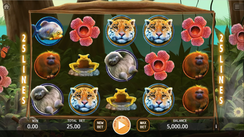 From the moment players load the game, they are greeted by a vivid jungle landscape, complete with tropical plants, hidden wildlife, and the atmospheric sounds of the rainforest. The reels are framed with natural details, immersing players in a world of exotic adventure.