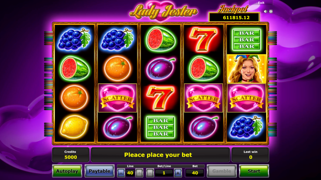 The Lady Jester slot machine delivers a stylish and playful casino experience designed around classic slot mechanics with a distinctly feminine flair. Developed by Greentube, this 5-reel video slot features up to 40 adjustable paylines, vibrant fruit symbols, and a charismatic Joker girl as its central character. Blending traditional slot foundations with modern flexibility, the game offers frequent winning combinations, an engaging risk-game, free spins, and a high-value jackpot tied to rare symbol formations. Wins can reach up to 2,000× per line, while the progressive jackpot adds an extra layer of long-term excitement.
