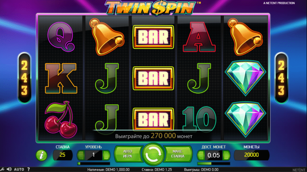 The Twin Spins slot game by NetEnt blends the charm of classic fruit machines with the excitement of modern video slots. With a sleek design, simple gameplay, and innovative features, Twin Spin delivers an engaging experience that appeals to both traditional slot fans and new players alike. Offering 5 reels and 243 ways to win, this slot keeps every spin thrilling with its Twin Reel feature, where two or more reels link together and display identical symbols boosting your winning potential with every turn. The game’s maximum payout can reach up to 1,000x your line bet, and its wild symbols make it easier to form lucrative combinations.